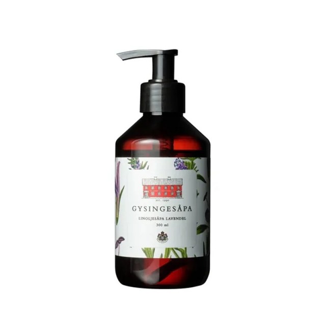 Gysingesåpa med lavendelduft er en kraftig og naturlig linoljesåpe med uslåelig rengjøringsevne, laget av linolje av høyeste kvalitet. Såpen er fet, og lett biologisk nedbrytbar, og løser effektivt opp smuss – selv i kaldt vann. Perfekt til all hjemmerengjøring av treverk, stein, kjøkkenbenker, baderom og porselen, samt skånsom håndsåpe. Tilgjengelig i tre naturlige dufter: lavendel, rosmarin og eucalyptus. Leveres i 300 ml pumpeflaske. pH-verdi ca. 11.